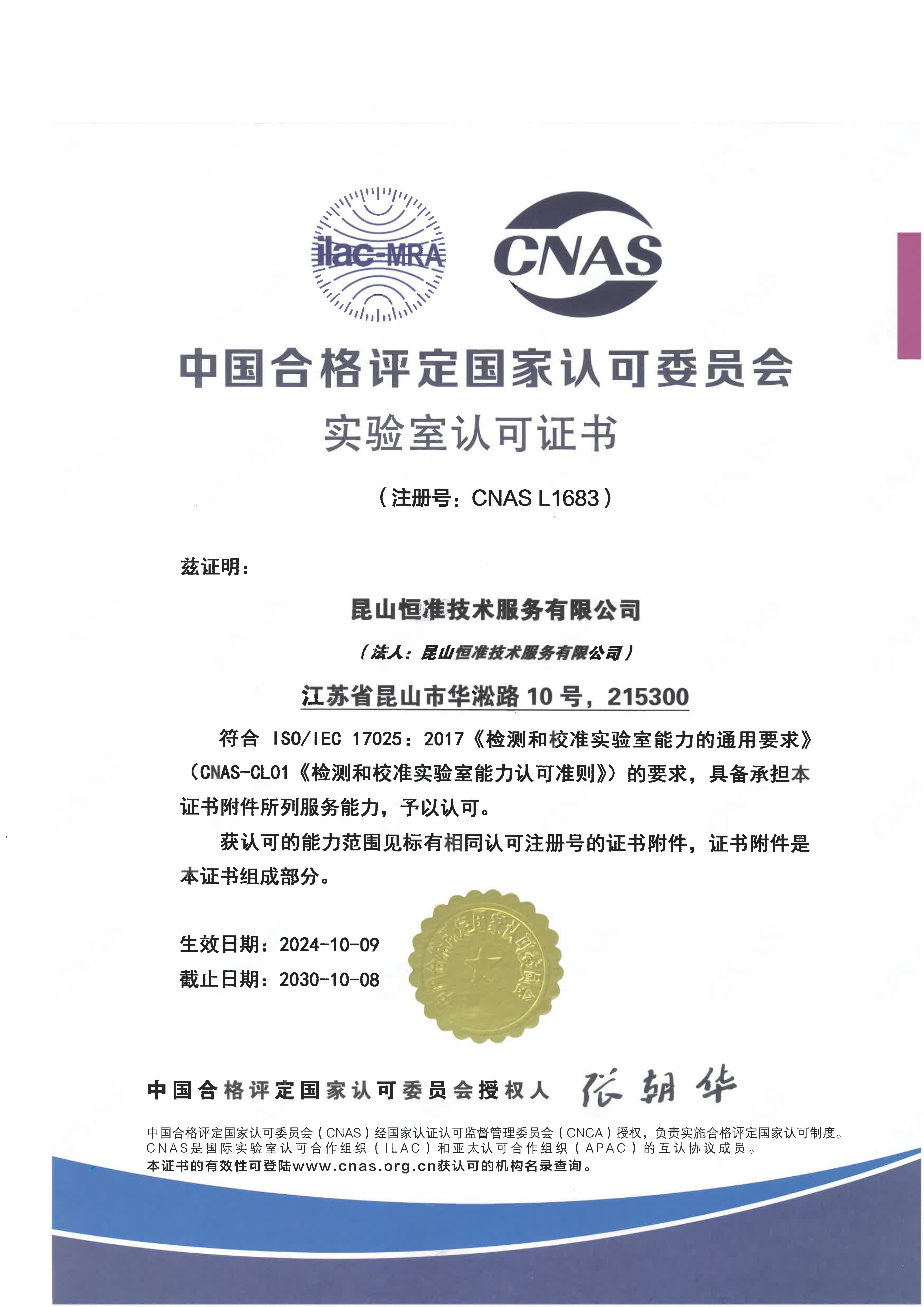 2003年08月,成立昆山恒準技術服務有限公司,依據ISO17025要求建置